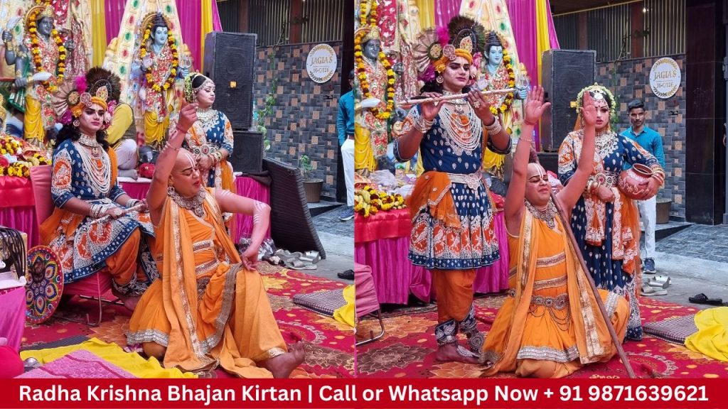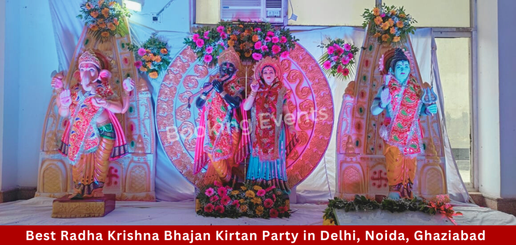 Are you looking to host a memorable Radha Krishan Bhajan Sandhya Party? Look no further! At Booking Events Radha ‘Krishna Bhajan Mandali’, we specialize in crafting divine experiences that resonate with the spiritual essence of Radha and Krishna’s love. We specialize in creating divine experiences through our Krishan Bhajan Sandhya Party. Immerse yourself in the enchanting melodies and spiritual aura of Radha and Krishna’s love as we take you on a journey of devotion and bliss.